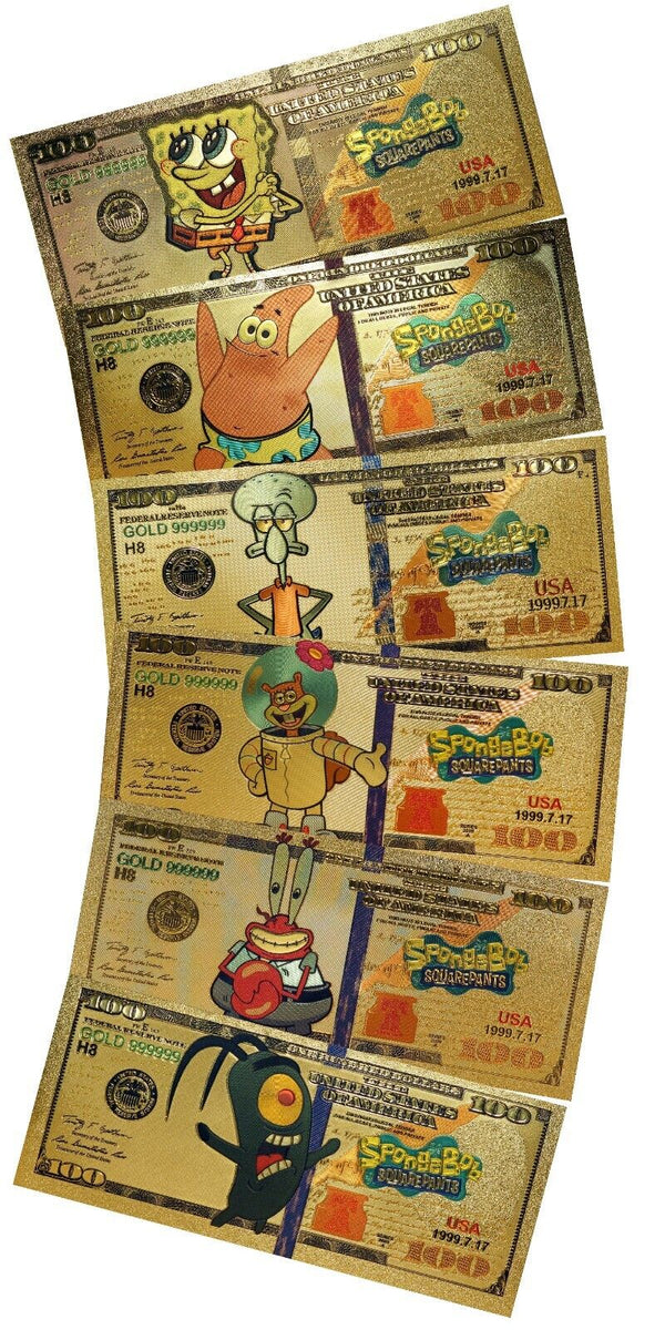 Spongebob Squarepants, Patrick Star, Sandy Cheeks, Squidward, Mr. Krabs and Plankton 6 Note set from the Series Spongebob Squarepants