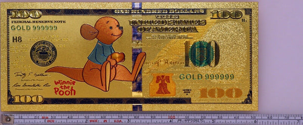 Roo Winnie The Pooh Disney Color Novelty 24K Gold Foil Plated Note Bill XX058
