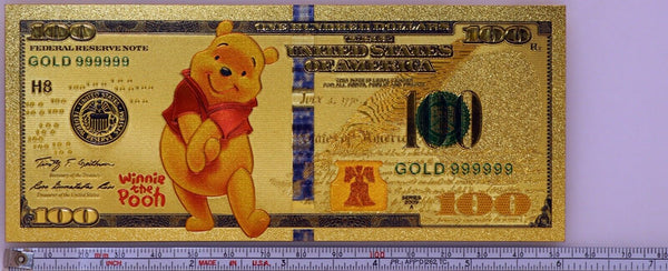 Winnie The Pooh Disney Color Novelty 24K Gold Foil Plated Note Bill XX054